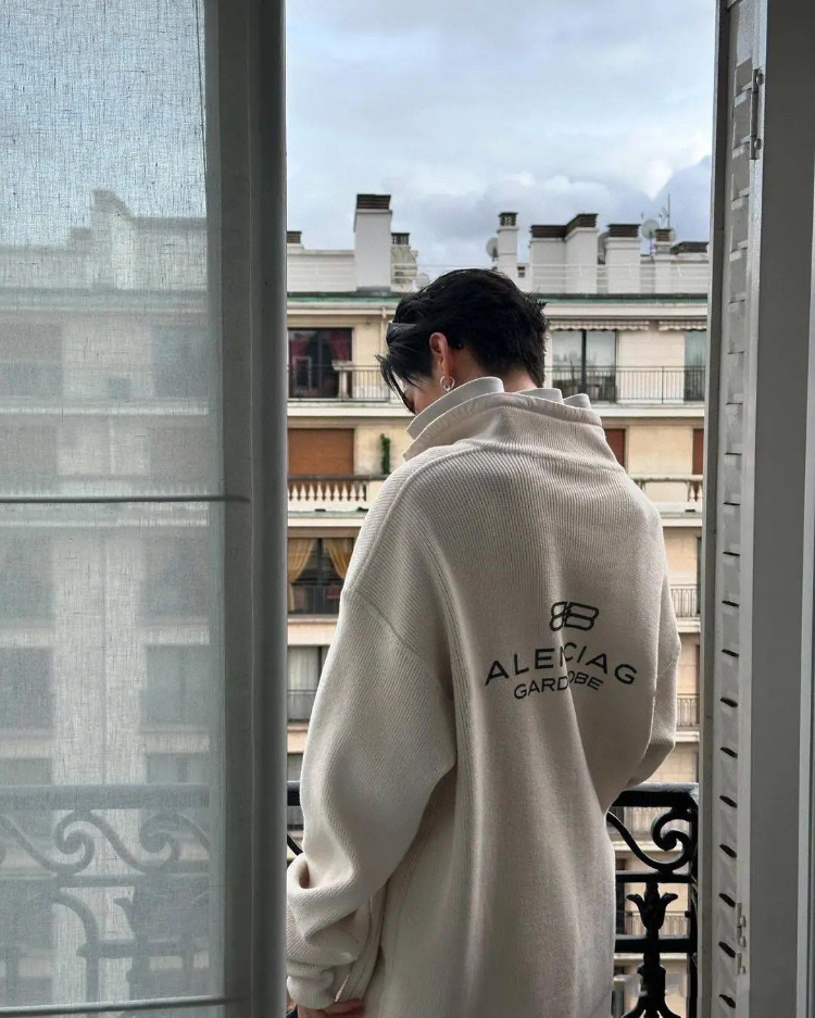 Balenciaga new faux two-piece wool knit cardigan jacket-5483