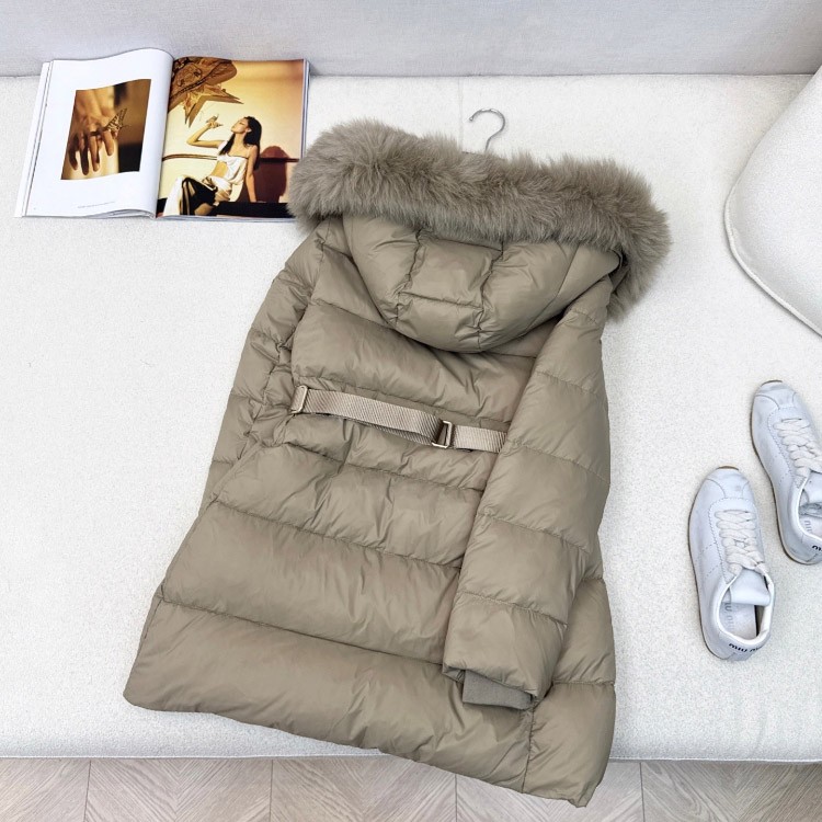 Burberry fitted, slimming, mid-length down jacket with fur collar and 90% white goose down filling-5338