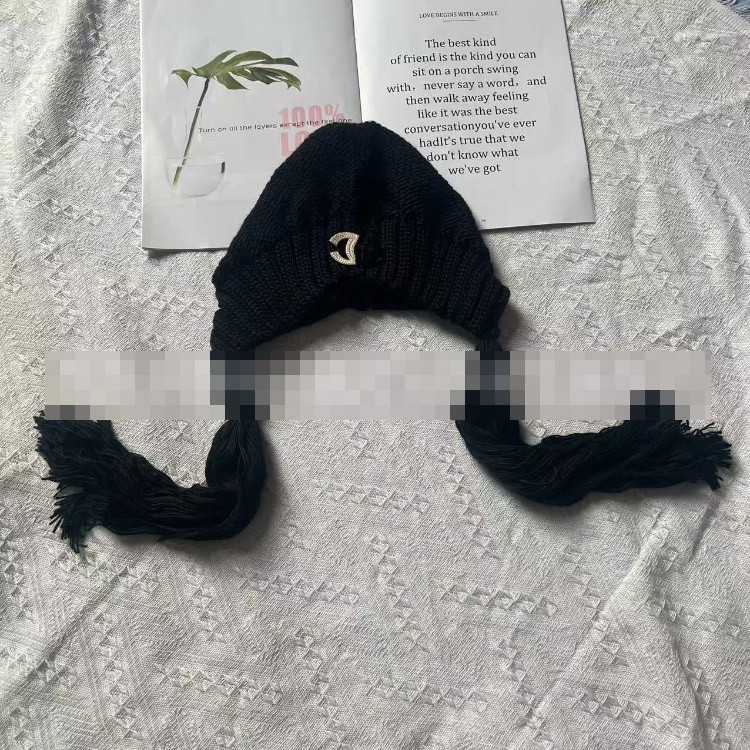 Chanel solid color vintage knitted hat with tassels-5856