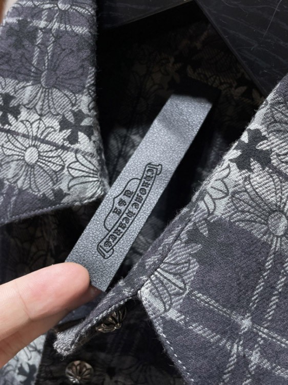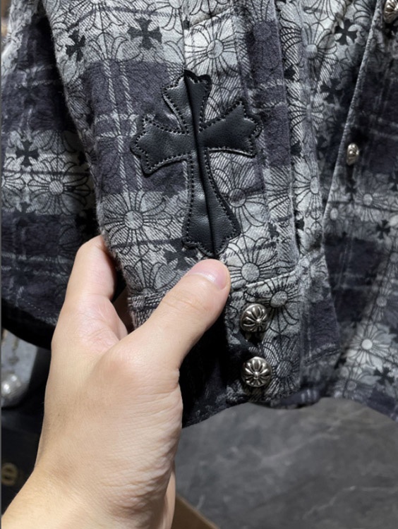 Chrome Hearts (CH) New Style Mixed-Material Plaid Shirt with Allover Print-6008