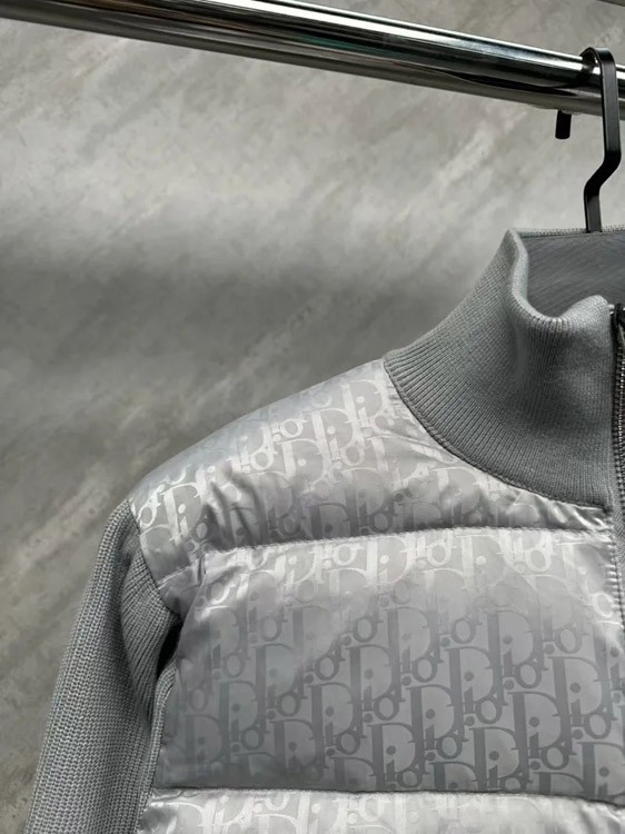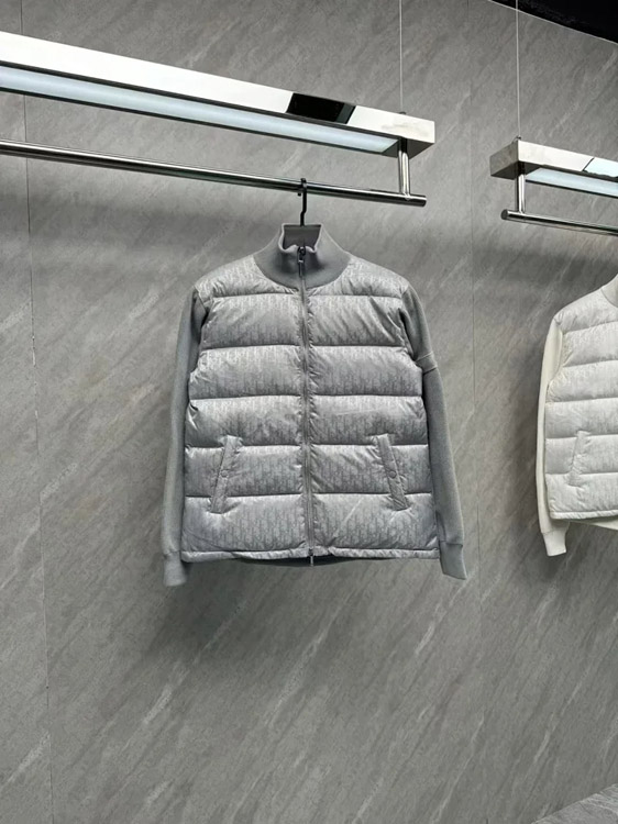 DIOR Oblique Print Solid Color Zipper Stand Collar Short Long Sleeve Down Jacket-4258
