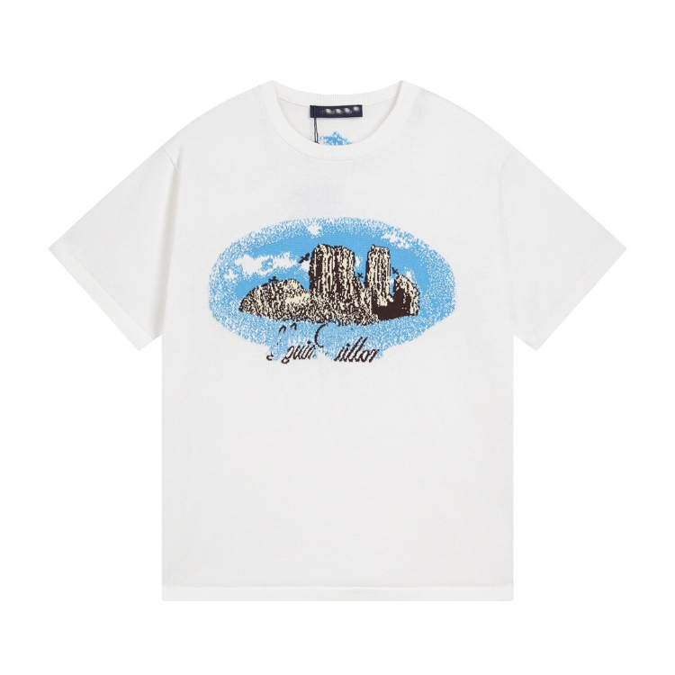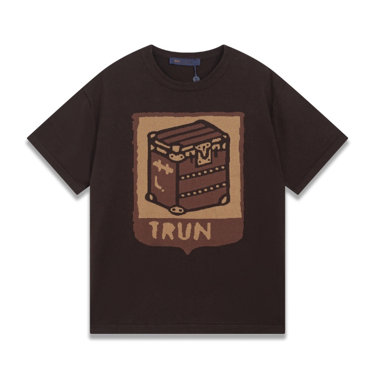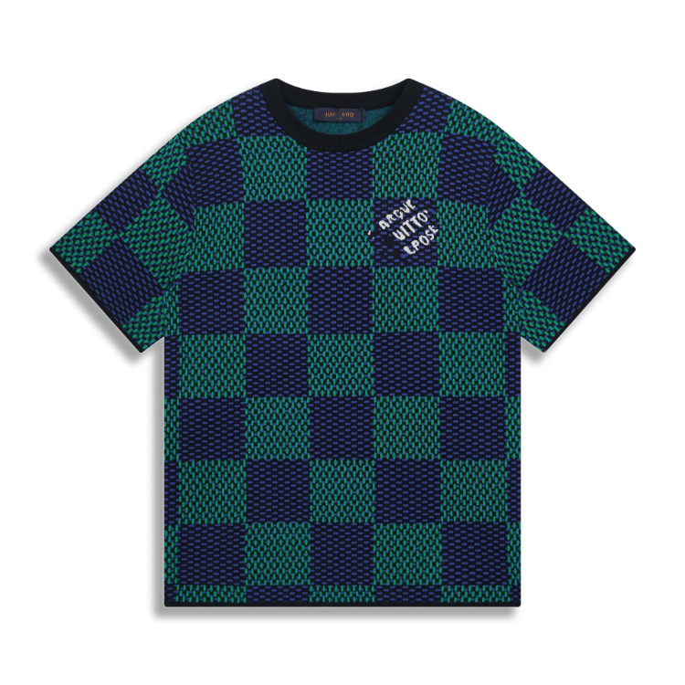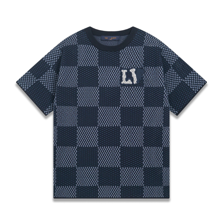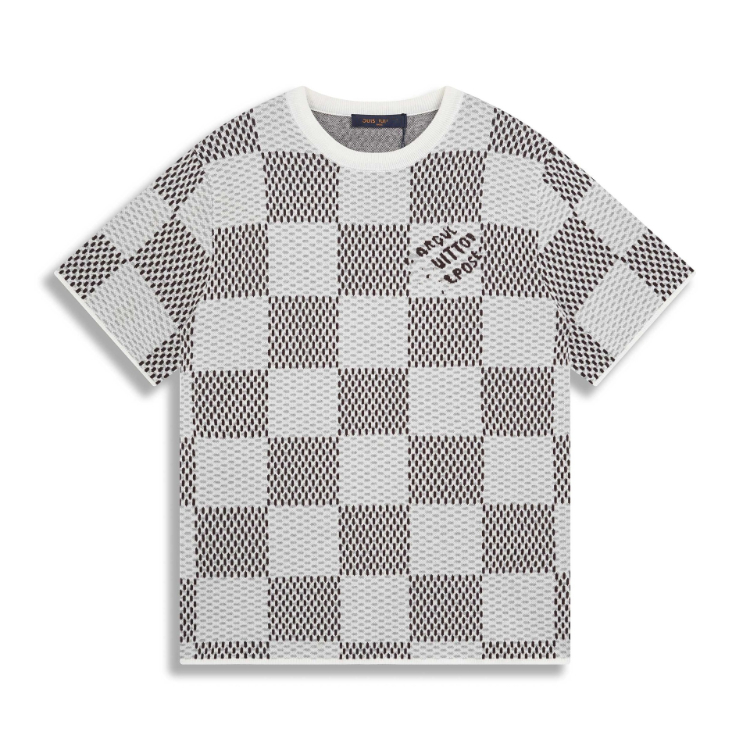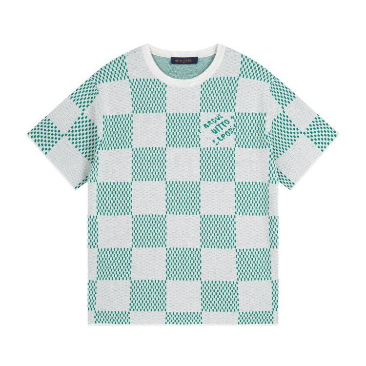 Home > Louis Vuitton LV knitted checkerboard pattern letter jacquard casual loose short-sleeved T-shirt-5308