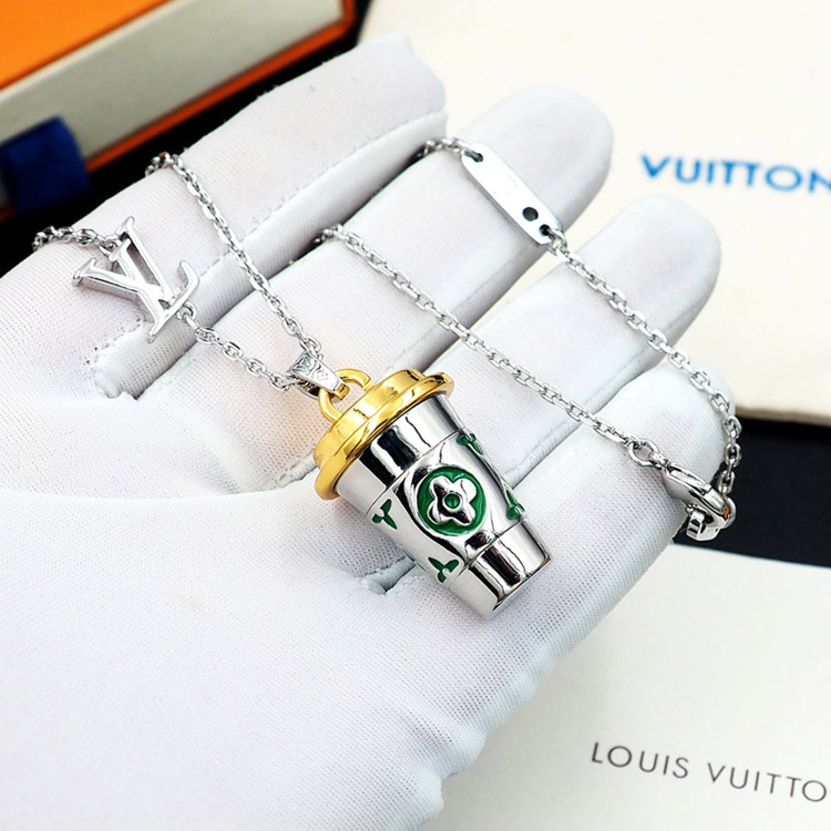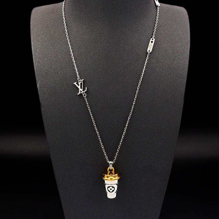 Home > Louis Vuitton LV Letter Floral Enamel Inscription Miniature Coffee Cup Necklace-3915