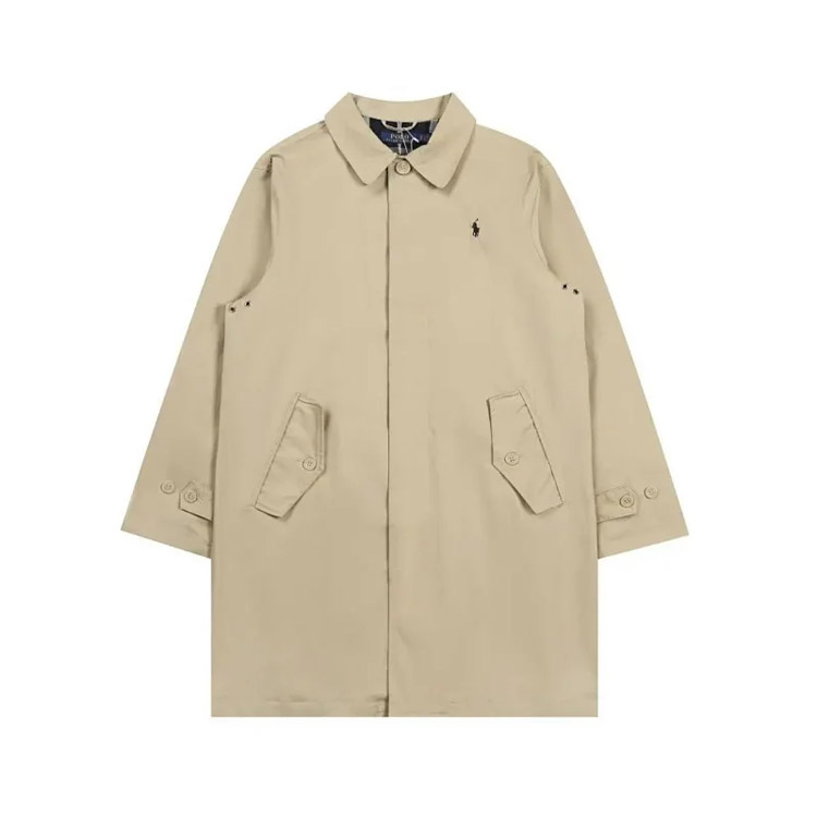 Polo Ralph Lauren solid color logo embroidered mid-length trench coat-4342