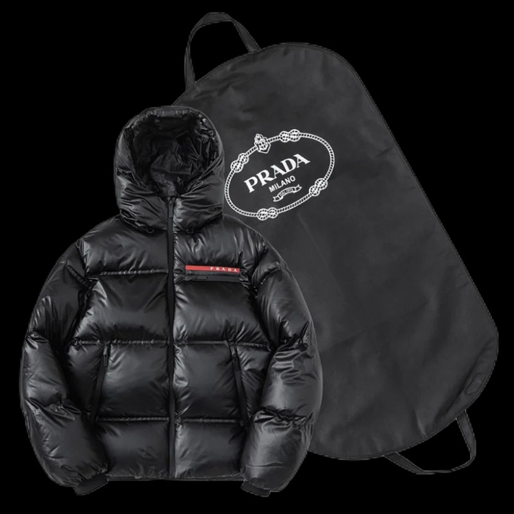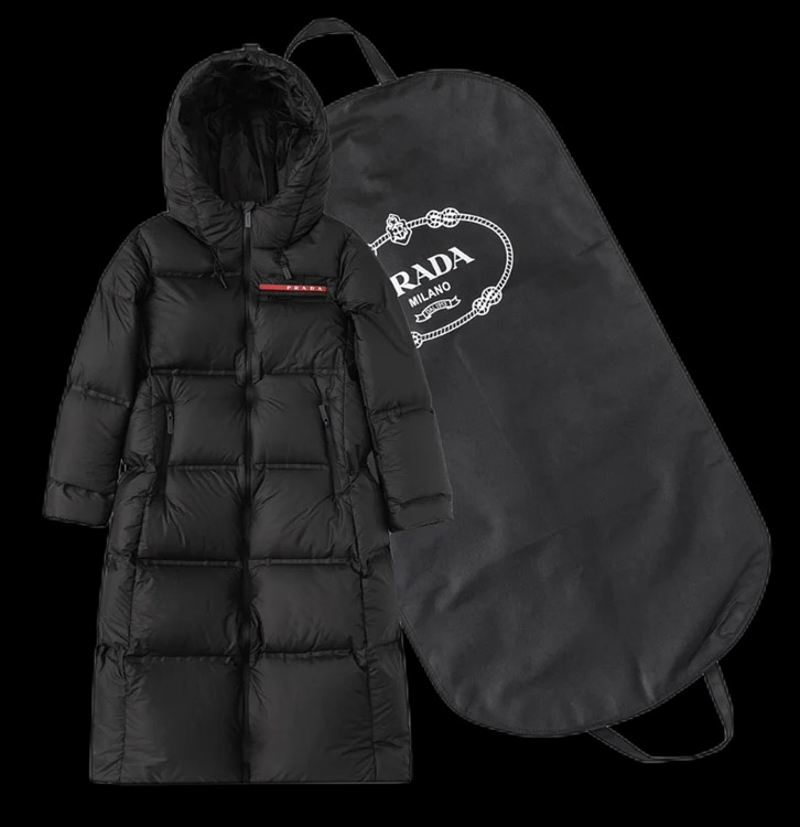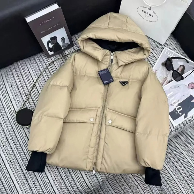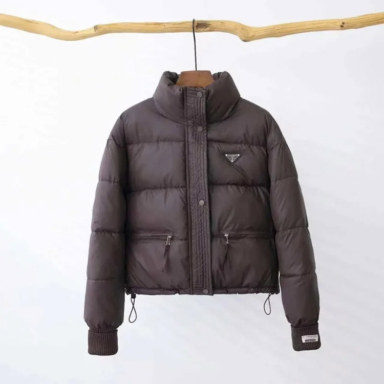 PRADA Prada Logo Badge Lapel Zipper Long Sleeve Down Jacket-4285