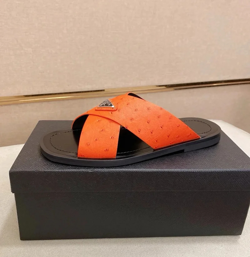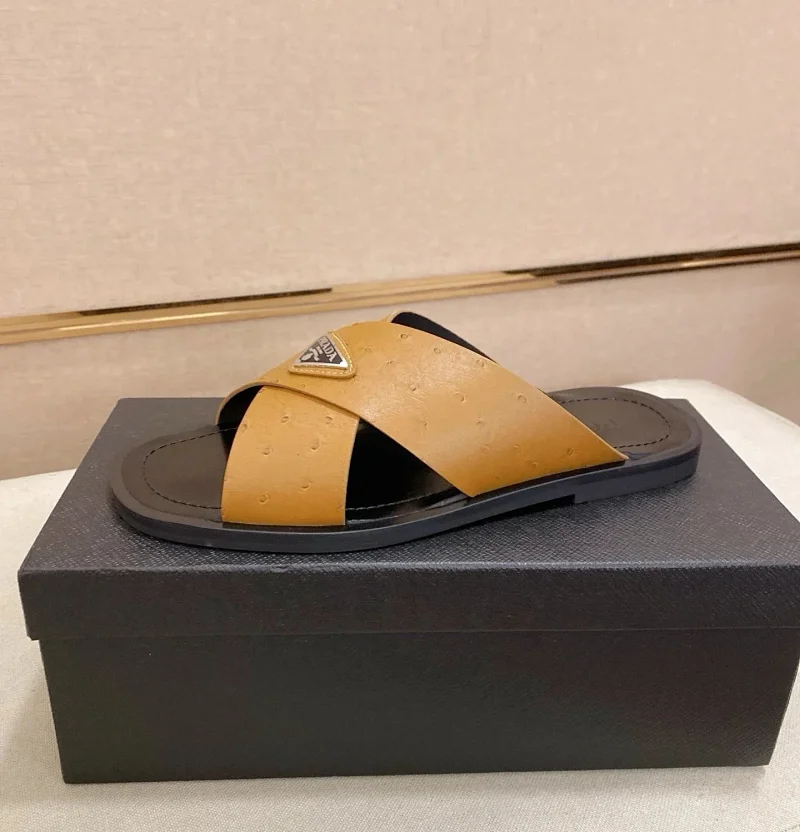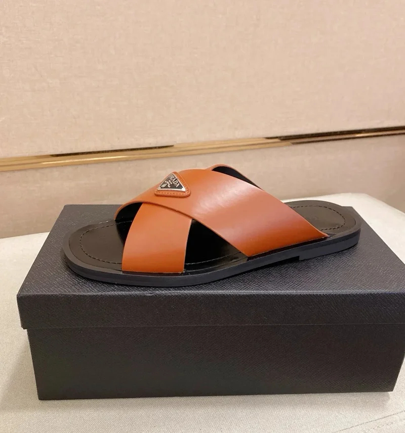 Prada Ultralight Breathable Leather Cross Slippers-5553