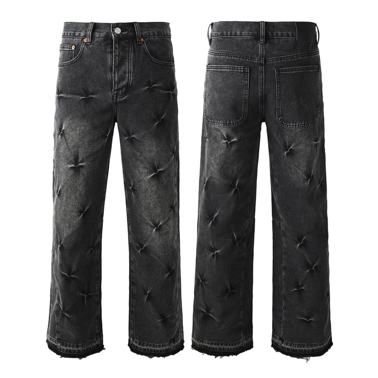 Home > Purple Brand new embroidered slim-fit ripped print stretch jeans-4250