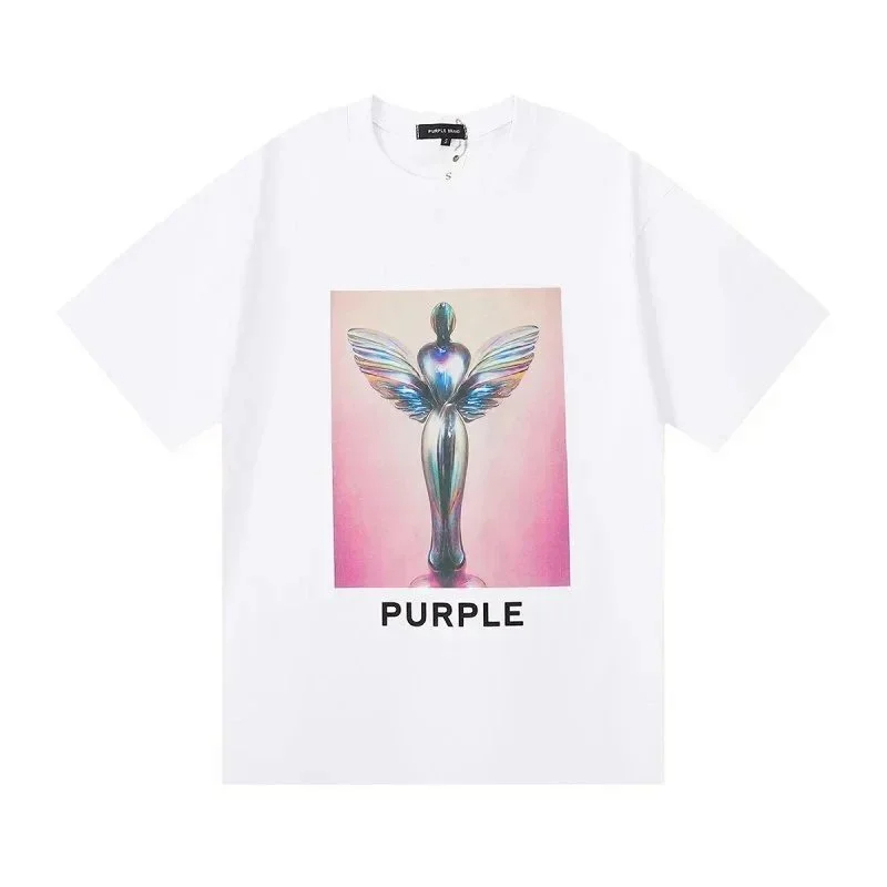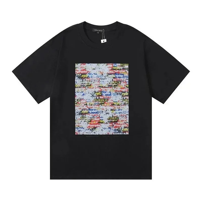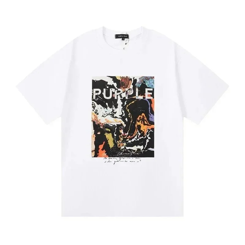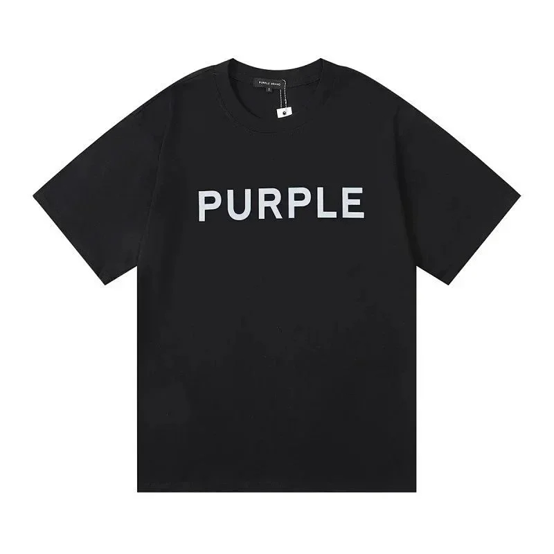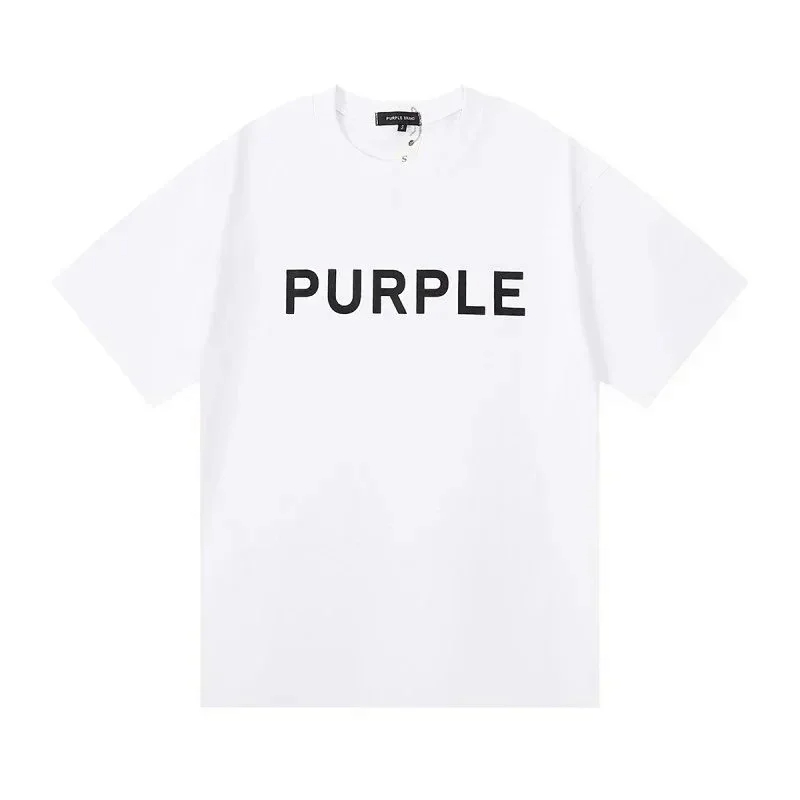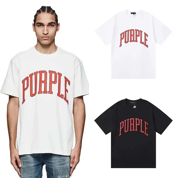 PURPLE Letter pattern printed short-sleeved T-shirt for men and women American high street half-sleeve-1886