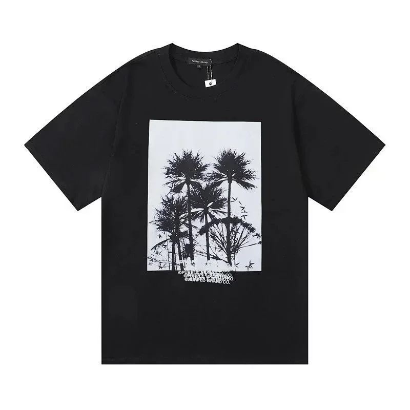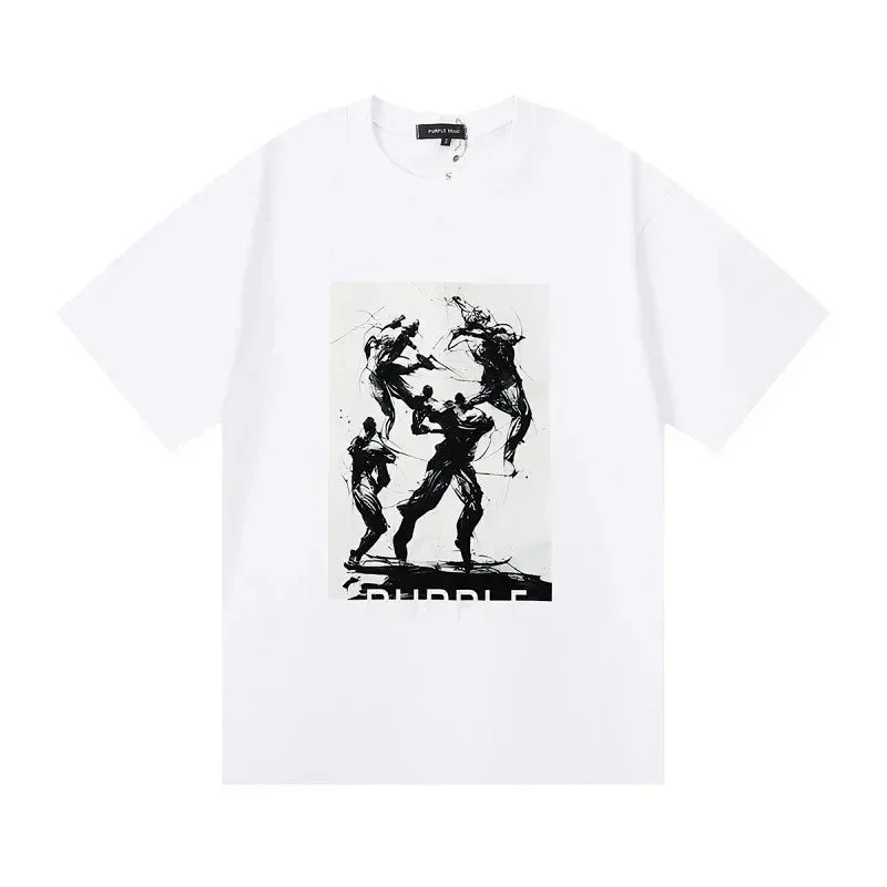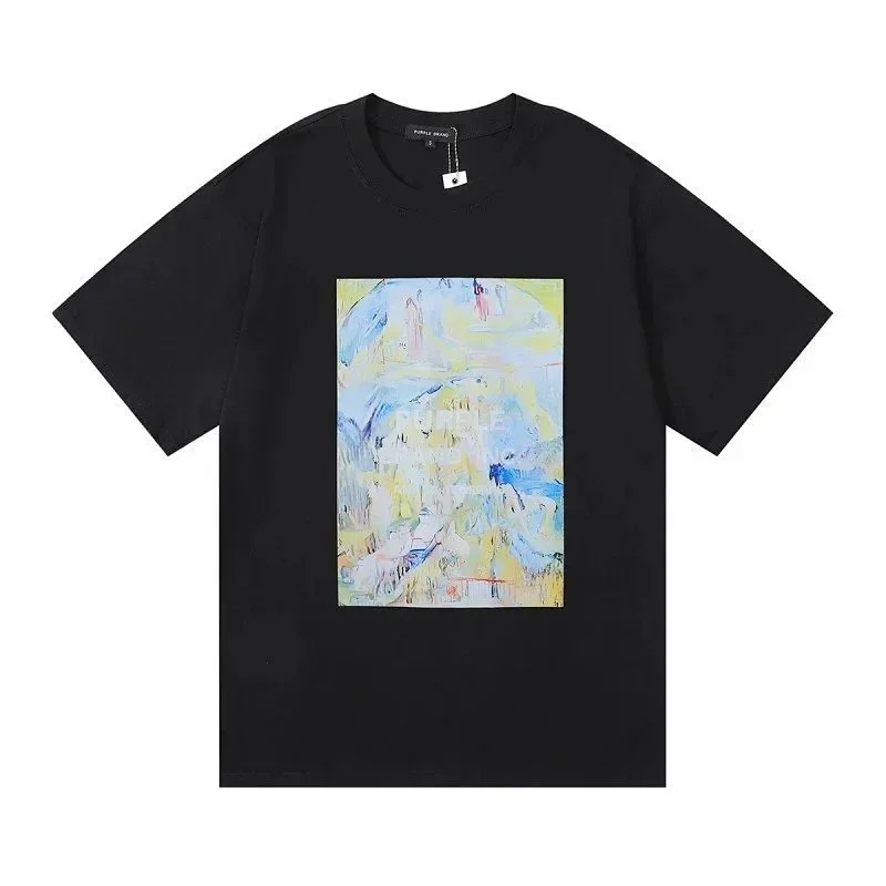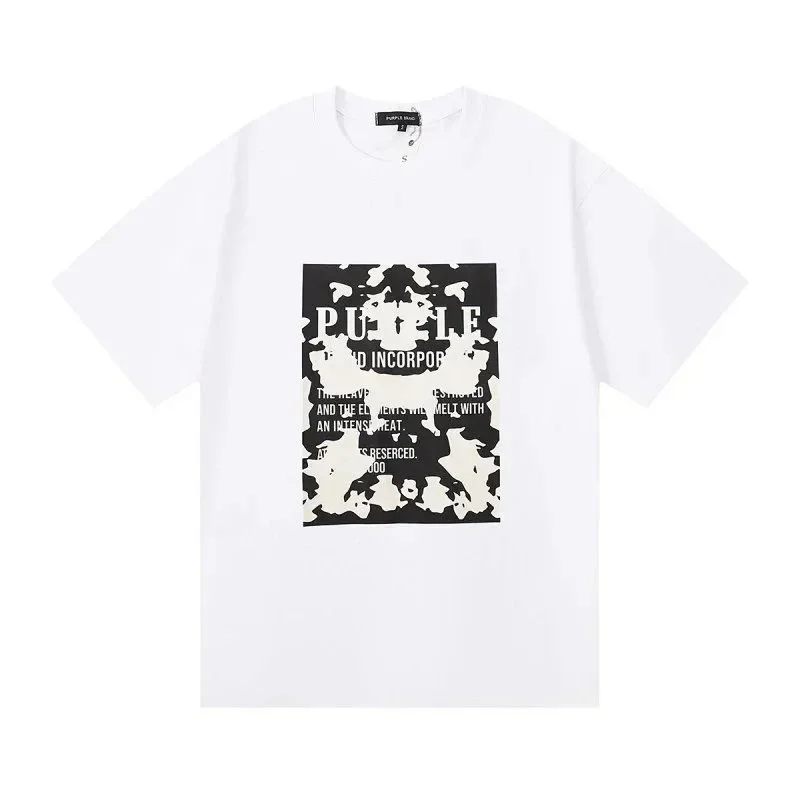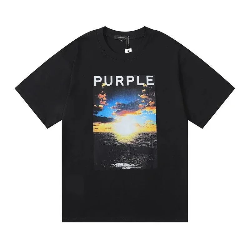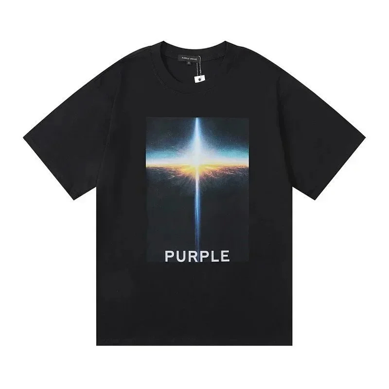 PURPLE Letter pattern printed short-sleeved T-shirt for men and women American high street half-sleeve-1886