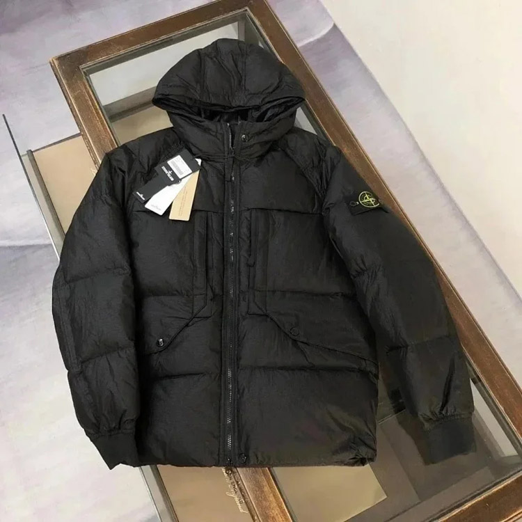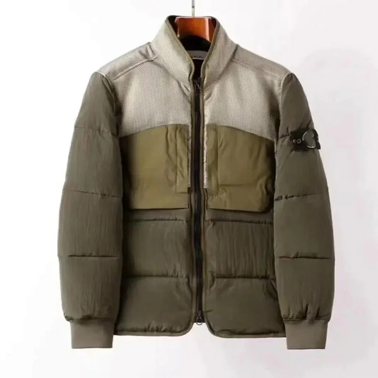 Stone Island hooded zipper stand collar patchwork design down jacket-4393