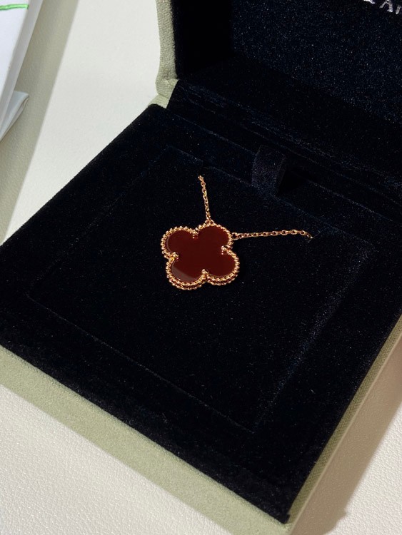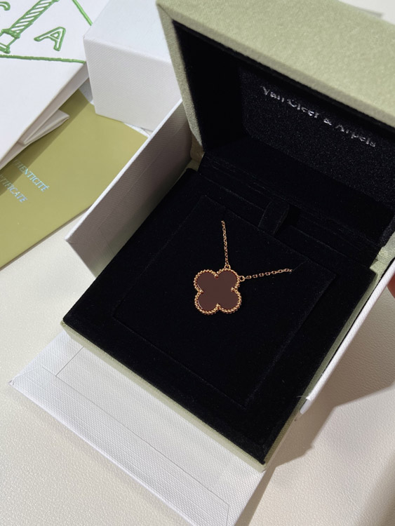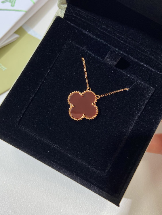 Van Cleef & Arpels four-leaf clover gold red obsidian wide necklace-3790