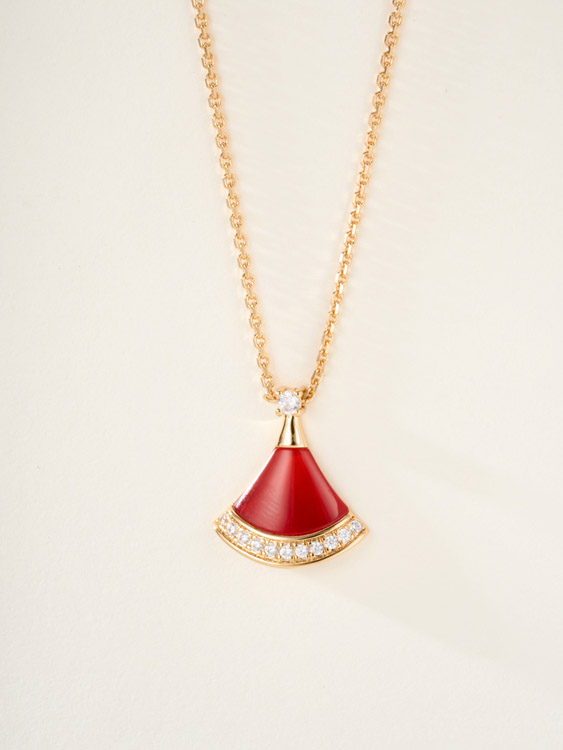 Bulgari fan white mother-of-pearl diamond rose gold carnelian blue green pendant necklace-3767