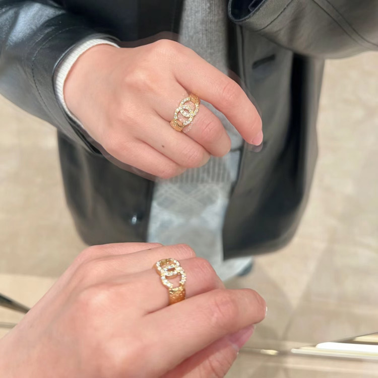 Chanel gold letter embossed double C diamond double-sided wearable ring-3591