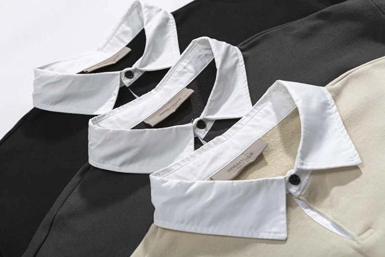 ESSENTIALS Printed Polo Collar Color-Blocked Pullover Terry Sweatshirt-5214