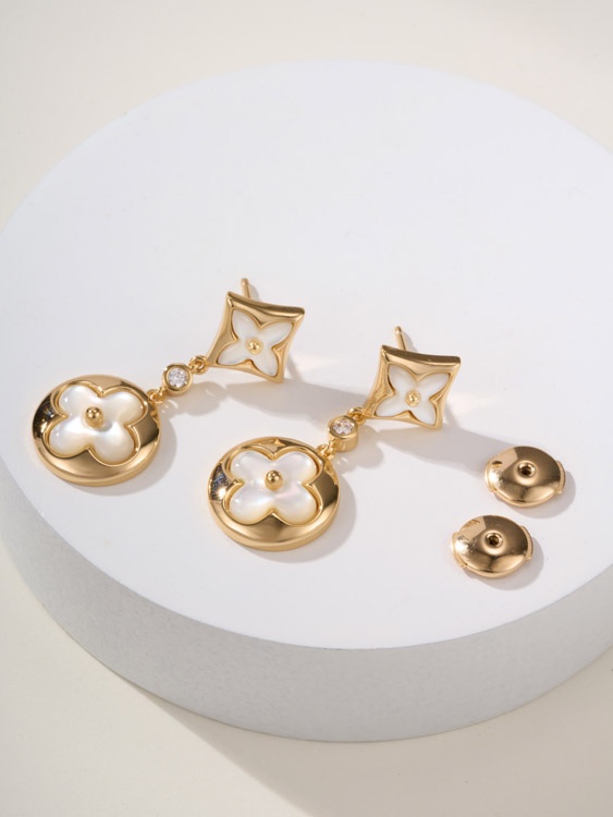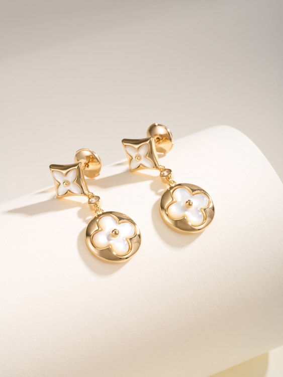 Louis Vuitton LV white mother-of-pearl earrings-3780