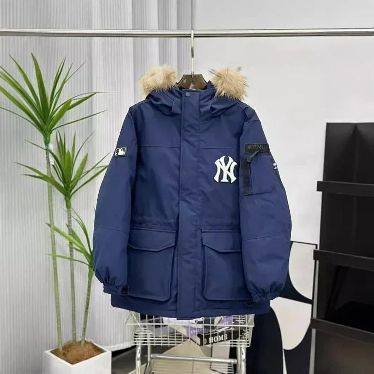 MLB workwear large fur collar mid-length white duck down parka jacket-4347