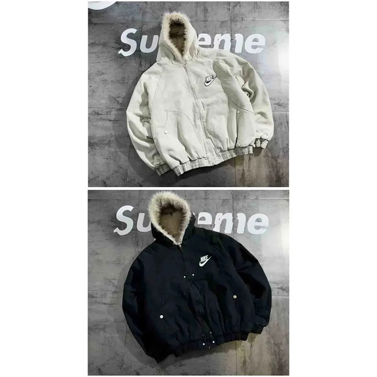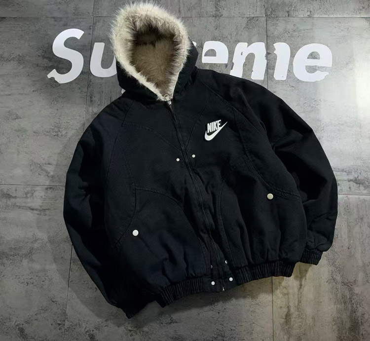 Nike new embroidered swoosh hooded fleece-lined cotton jacket-5079
