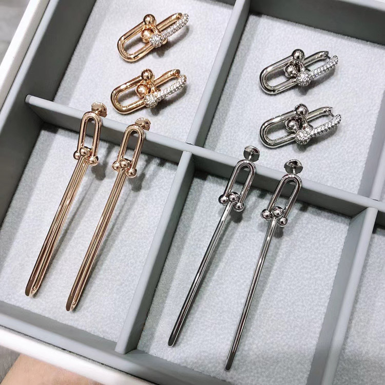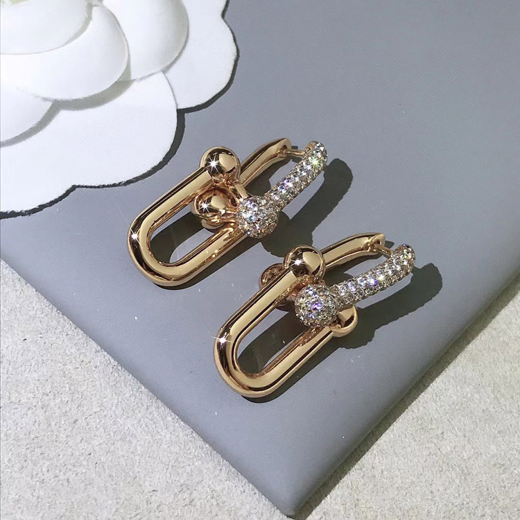 Home > Tiffany rose gold diamond double ring horseshoe buckle earrings-3678